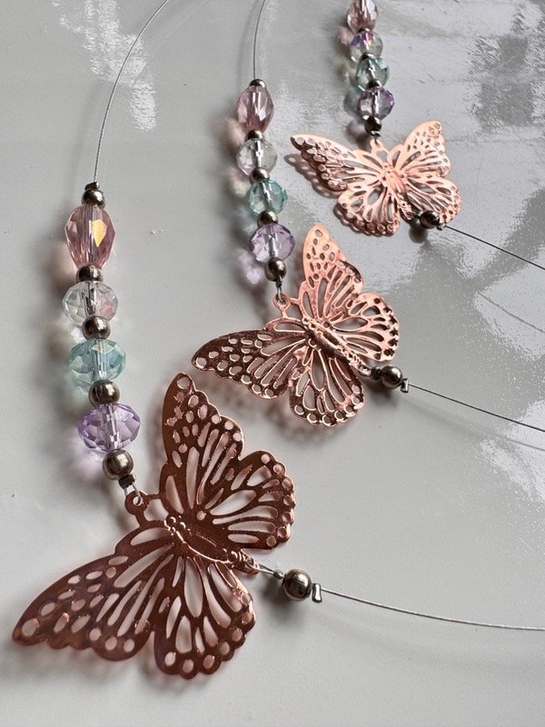 Mariposa de puro cristal en versión tira, mide aproximadamente 55 cm y es súper luminosa! En algunas fotos se ven 3 tiras juntas pero el valor es por una tira sola