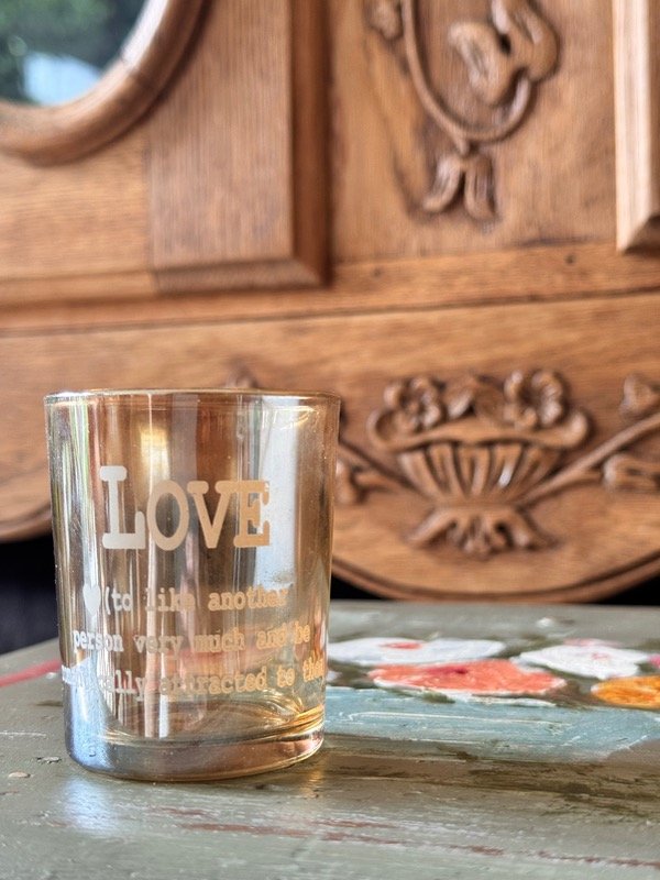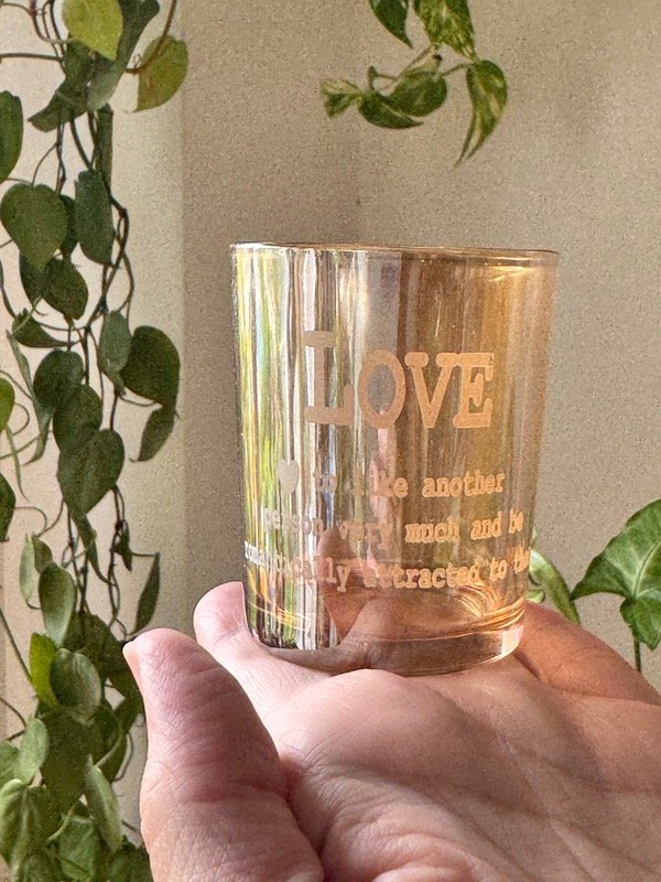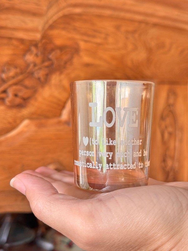 Fanal vela de noche mide 6x7 aproximadamente color ámbar con letras blancas